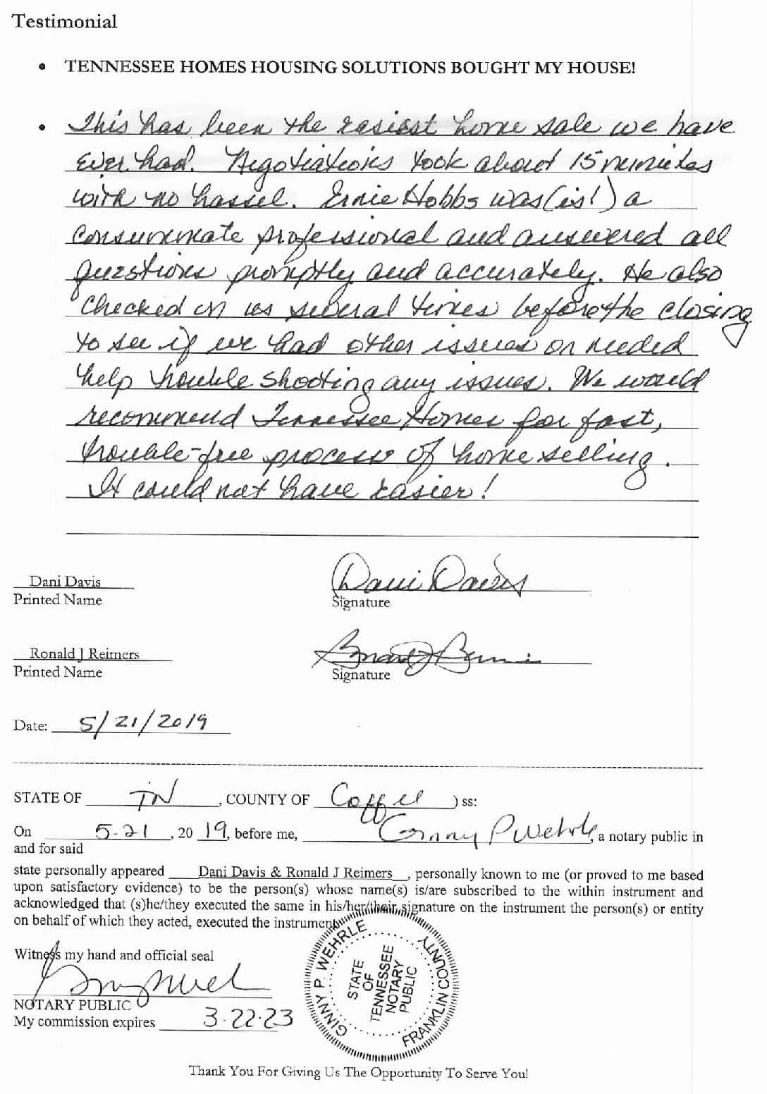 We strive to please all of our customers. Many times, we receive testimonials about how well we helped a family in need.